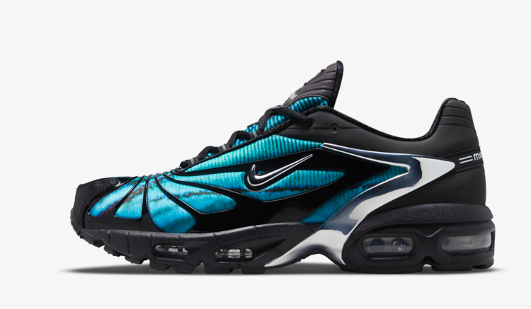 Para esta nueva entrega, el rey del Grimey Sk Air, Skepta se ha inspirado en el mundo natural. Partiendo del concepto del renacimiento creativo, representado a través de la mariposa y su metamorfosis. Esta nueva sneaker viene con un estampado por sublimación que imita las alas de una mariposa rodeadas por una malla negra estructural. La inspiración viene extraída de las Air Max Tailwind V Plus. Las zapatillas tienen detalles de color cromo, característicos de las Sk Shox. La iridiscencia alrededor del talón inspirada en la portada de su álbum Ignorance Is Bliss le dan el toque final.