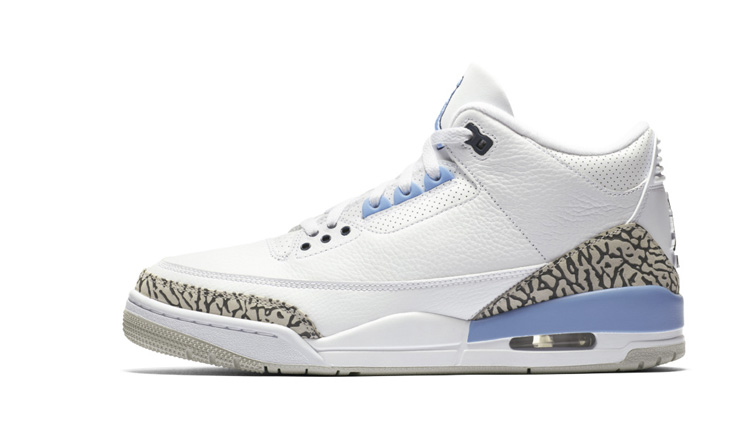 La duda que todos teníamos sobre estas Jordan 3 Retro UNC se ha despejado por las malas, todos estábamos queriendo y deseando que estas J3 incluyeran en logo de UNC en la lengüeta en lugar del Jumpman pero nuestra suerte, no ha sido el caso. Le han cascado los dos logos de Jordan Brand como unos señores y nuestro gozo en un pozo. Los que amamos la marca conocemos de sobra la historia y de donde viene lo de UNC pero, para los que llegáis tarde a la película os contamos que la Universidad de Carolina del Norte fue donde Michael Jordan empezó a ser la superestrella que acabó siendo en la NBA, por llamarlo de alguna manera, son sus raíces.