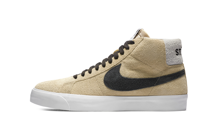 Las Stussy x Nike Sb Blazer Mid tienen potencial por sí solas aún sin el patrón, se trata de unas Blazer Mid clásicas con los upper de ante de pelo largo color canela, un swhoosh lateral enorme en negro a conjunto con los shoe laces, la midsole blanca y detalles característicos de Stussy como el bordado en la lengüeta y las inscripciones traseras en la caña alta del talón, la verdad, un modelo muy combinable y de gran versatilidad.